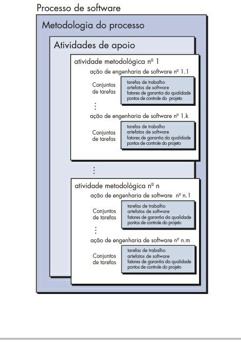 O que é? Quando se trabalha na elaboração de um produto ou sistema, é importante seguir uma série de passos previsíveis - um roteiro que ajude a criar um resultado de alta qualidade e dentro do prazo estabelecido. O roteiro é denominado "processo de software". Quem realiza? Os engenheiros de software e seus gerentes adaptam o processo às suas necessidades e então o seguem. Os solicitantes do software têm um papel a desempenhar no processo de definição, construção e teste do software. Por que ele é importante? Porque propicia estabilidade, controle e organização para uma atividade que pode, sem controle, tornar-se bastante caótica. Entretanto, uma abordagem de engenharia de software moderna deve ser "ágil". Deve demandar apenas atividades, controles e produtos de trabalho que sejam apropriados para a equipe do projeto e para o produto a ser produzido. Quais são as etapas envolvidas? O processo adotado depende do software a ser desenvolvido. Um determinado processo pode ser apropriado para um software do sistema "aviônico" de uma aeronave, enquanto um processo totalmente diferente pode ser indicado para a criação de um site. Qual é o artefato? Do ponto de vista de um engenheiro de software, os produtos de trabalho são os programas, os documentos e os dados produzidos em consequência das atividades e tarefas definidas pelo processo. Como garantir que o trabalho foi feito corretamente? Há muitos mecanismos de avaliação dos processos de software que possibilitam às organizações determinarem o nível de "maturidade" de seu processo de software. Entretanto, a qualidade, o cumprimento de prazos e a viabilidade a longo prazo do produto que se desenvolve são os melhores indicadores da eficácia do processo utilizado.